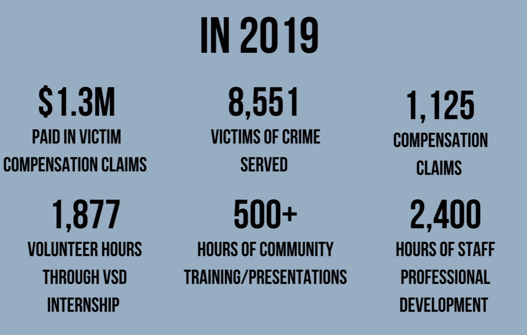 The goal of the Victim Services Division is to help victims of crime mitigate their trauma, navigate the criminal justice system, and rebuild their lives. Learn more about their work and accomplishments in 2019 in this report.
